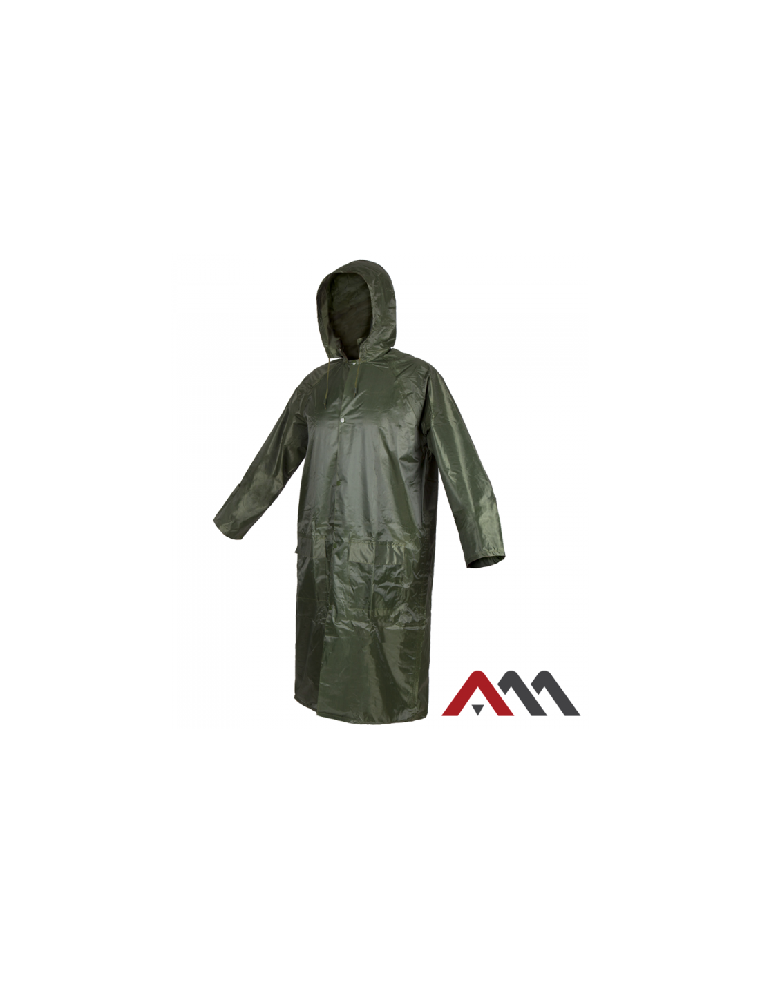 Wysokiej jakości płaszcz przeciwdeszczowy z kapturem z elastycznego materiału o wysokiej wytrzymałości w kolorze zielonym.