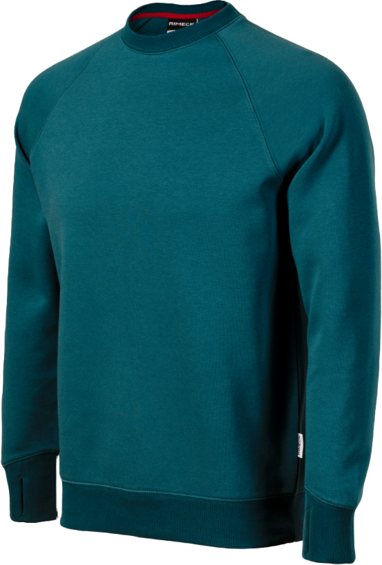 Prosty krój ze szwami bocznymi. Lamówka na karku wzmocniona kontrastową taśmą. Raglanowe rękawy z podwójnym przeszyciem. Dolny ściągacz, mankiety i lamówka z dzianiny ściągaczowej 2:2 z dodatkiem 5 % elastanu. Mankiety z otworem na kciuk. Elementy kontrastowe